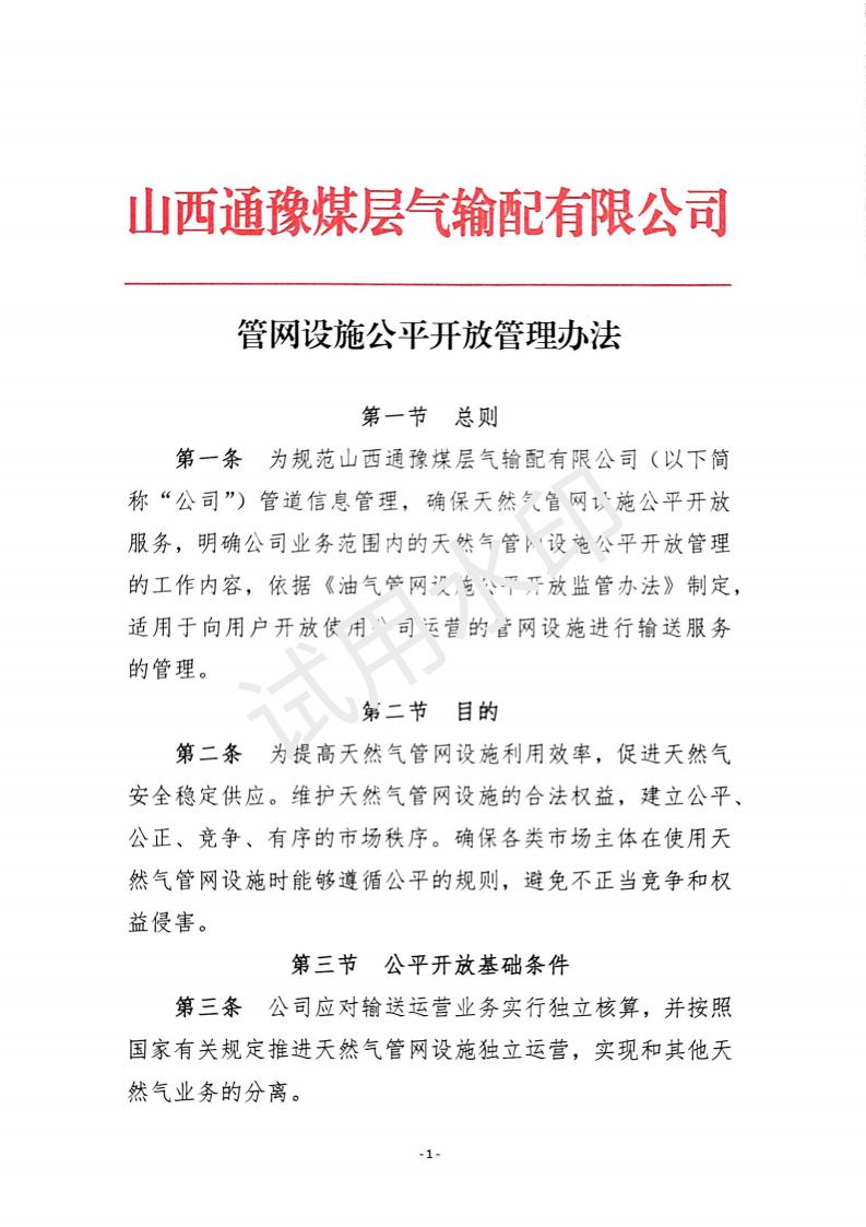 管网设施公平开放管理办法