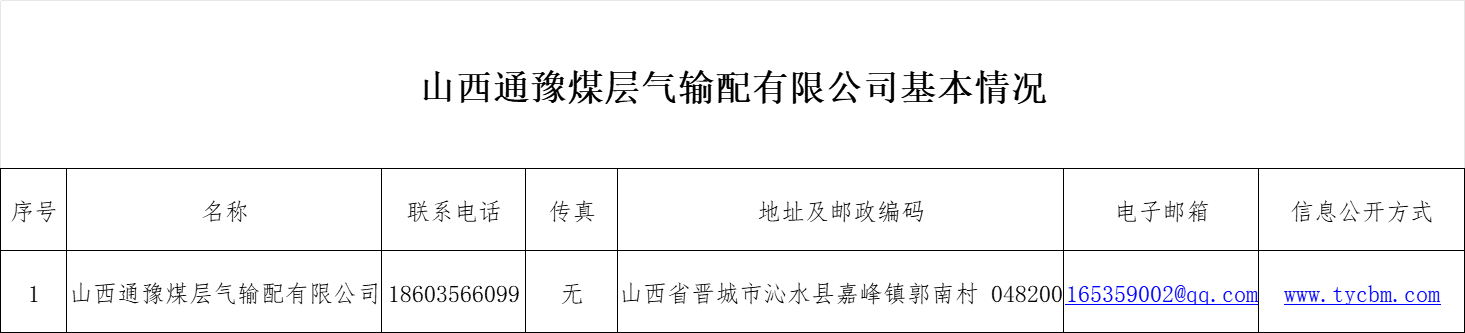山西通豫煤层气输配有限公司基本情况